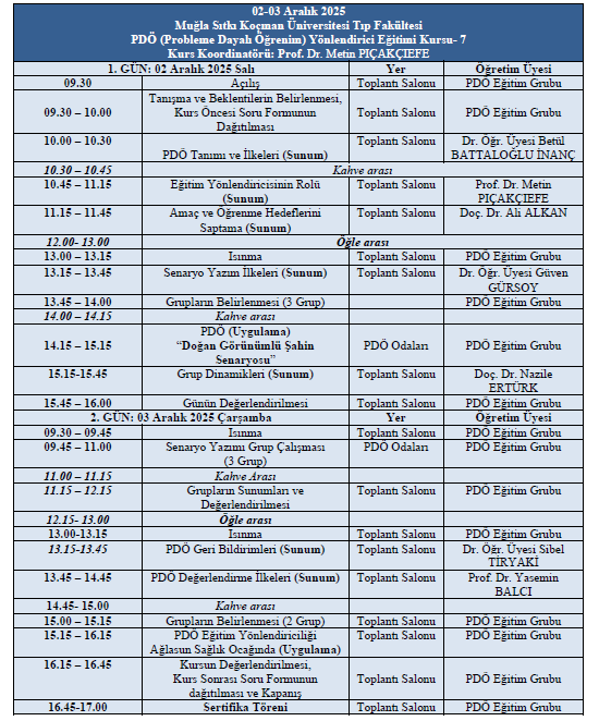 Probleme Dayalı Öğrenim Yönlendirici Eğitimi Kursu tamamlandı