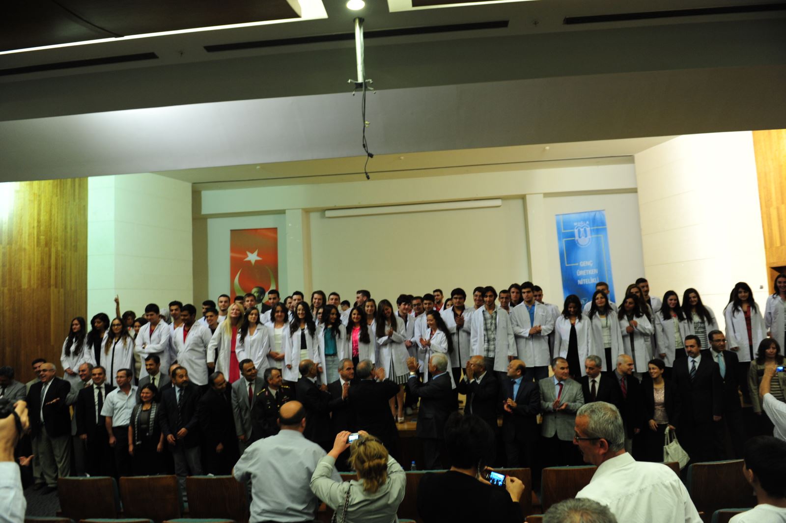 Öğrencilerimizin ‘Beyaz Önlük’ giyme törenine Vali Mustafa Hakan Güvençer, CHP Muğla Milletvekili Prof. Dr. Nurettin Demir, Belediye Başkanı Dr. Osman Gürün, Cumhuriyet Başsavcısı İbrahim Akbaş, Adalet Komisyonu Başkanı Mahmut Ege, Rektörümüz Prof. Dr. Mansur Harmandar, İl Sağlık Müdürü Dr. Cihan Tekin, Kamu Hastaneleri Birliği Genel Sekreteri Gürbüz Akçay, Dekanımız İrfan Altuntaş, Tıp Fakültesi Hastanesi Başhekimi Prof. Dr. Gürsoy Doğan, öğretim üyelerimiz, öğrenci velileri ve öğrenciler katıldı.